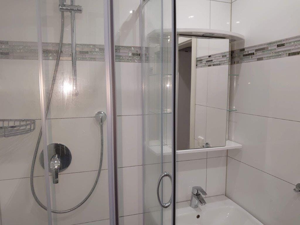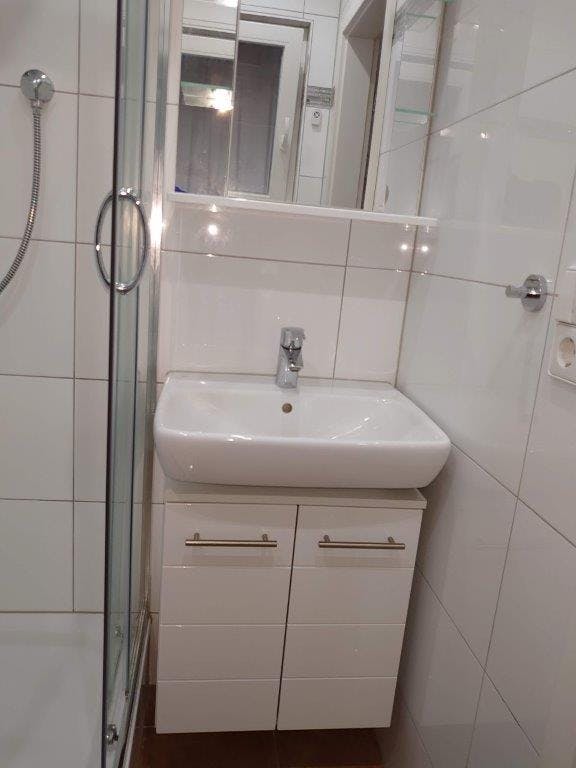 Beschreibung: Das Zimmer mit Bad ist möbiliert. Die Lage ist ebenerdig in einem Anbau. Dieser hat einen eigenen Eingang. Ausstattung: 1 Miniküche mit Kühlschrank und Herdplatte und Mikrowellengerät. 1 Fernseher wandhängend 1 Waschmaschine Kleiderschrank Klappbett mit Schrankaufsatz Schreibtisch und Stühle Lage: In Untertürkheim auf der Höhe vom Luginsland Sonstiges: Fernseher mit Sat.-Anschluss Internetzugang per W-lan ----------------------------------------------------------------------------------------------------- Description: The room with bathroom is furnished. The location is at ground level in an annex. This has its own entrance. Equipment: 1 mini kitchen with refrigerator and stove top and microwave. 1 wall mounted TV 1 washing machine closet folding bed with wardrobe desk and chairs Location: In Untertürkheim on the height of the Luginsland Other: TV with satellite connection Internet access via W-lan