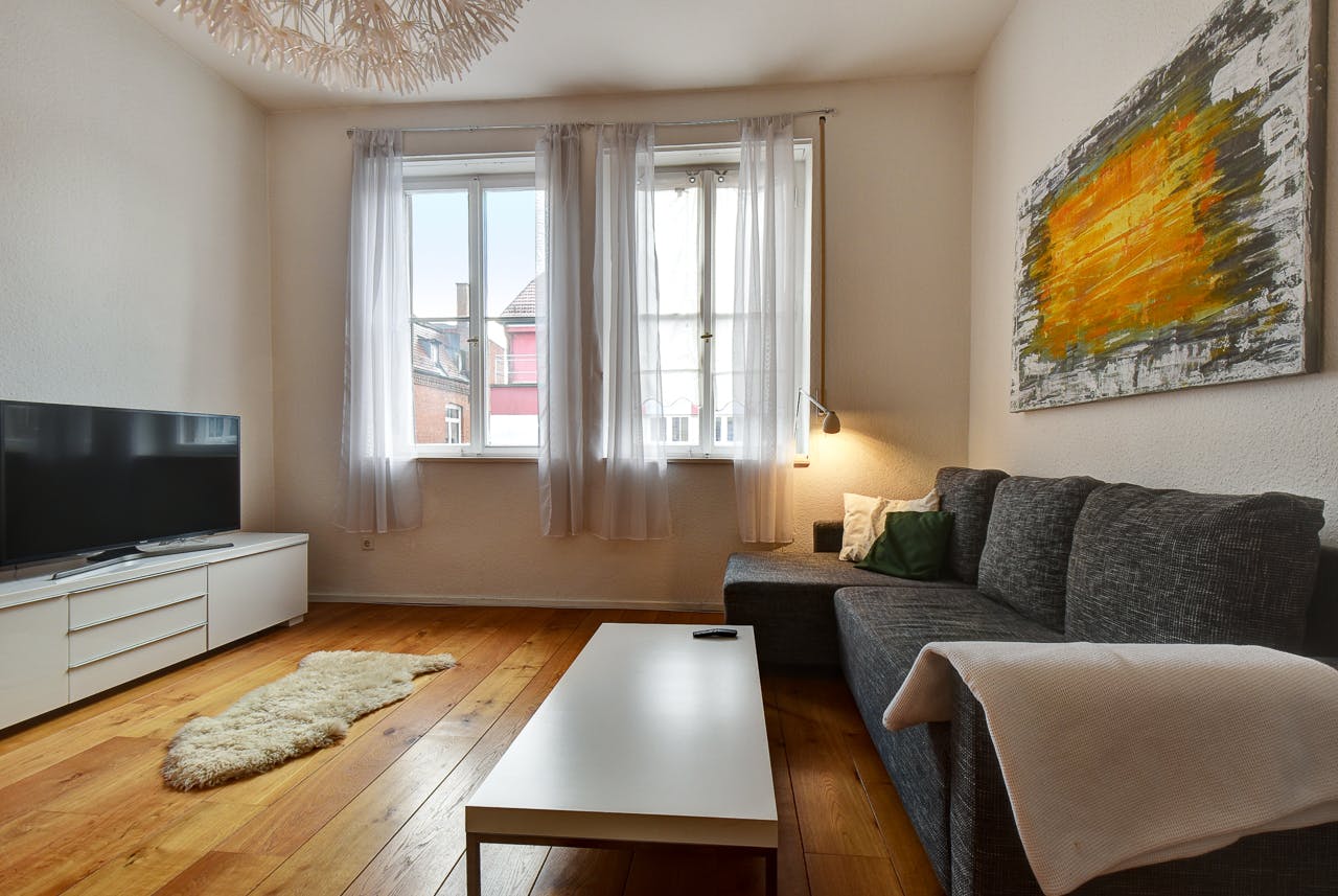 In diese lichtdurchflutete vollmöblierte 2-Zimmer Altbauwohnung mit Balkon mitten im Stuttgarter Westen können Sie mit dem Koffer einziehen. Die Wohnung besitzt das typische Jugendstilambiente mit hohen Decken, weißen Kassettentüren und Dielen aus Eichemassivholz. Die toll gut geschnittene Wohnung Wohnung ist wie folgt aufgeteilt: - helles großes Wohn-/Esszimmer mit Couch, Sideboard, Smart-TV und Echtholz-Esstisch samt vier bequemen Stühlen - Schlafzimmer mit Französischem Bett (140x200), Kleiderschrank und kleinem Home-Office-Schreibtisch - charmante, voll ausgestattete Einbauküche mit kleinem Frühstücks-Bistrotisch, Kühl- Gefrierschrank, Geschirrspüler und Zugang zum Küchenbalkon - großzügige Diele mit großem Schrank und extra viel Stauraum - Badezimmer mit großer Badewanne und Tageslicht - Waschmaschine - Abstellraum im Keller Die Altbautypischen...