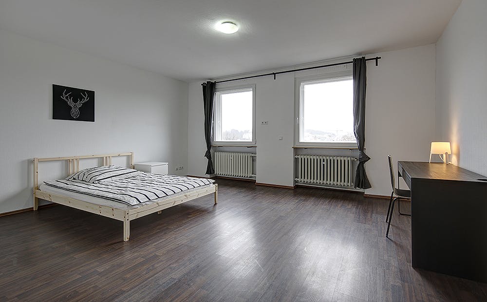 ROOM Our flats fulfil all your daily living requirements. Every flat comes readily equipped with a kitchen, including refrigerator, cooking equipment and dishes. Flats also include a washing machine and Wi-Fi Internet. Each room is fully furnished and offers a comfortable bed with fresh linen and a workspace. The area provides you with several shopping opportunities and excellent connections to public transport.