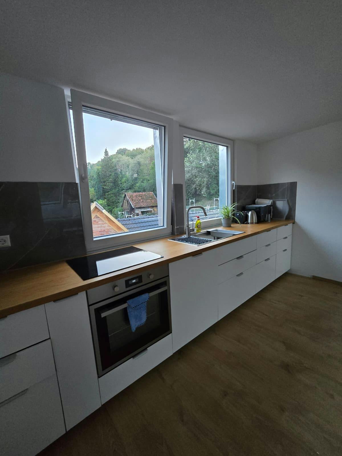 Willkommen in Ihrem neuen Zuhause! Die Wohnung befindet sich in der 2. Etage eines gepflegten Mehrfamilienhauses und wurde 2024 vollständig kernsaniert. Auf ca. 60 m2 erwartet Sie ein harmonisches Zusammenspiel aus modernen Materialien, stilvollem Interieur und funktionaler Ausstattung. Wohnzimmer: Schlafsofa, Smart-TV und Essplatz für bis zu vier Personen Einbauküche: komplett ausgestattet mit Geschirrspüler, Toaster, Wasserkocher, Kaffeemaschine, Backofen, Gefrierfach sowie sämtlichem Kücheninventar Schlafzimmer 1: Doppelbett (1,80 × 2 m) und Kleiderschrank Schlafzimmer 2: Einzelbett – flexibel nutzbar als Kinderzimmer oder Arbeitszimmer Tageslichtbad: modern, mit bodengleicher Dusche; Waschmaschine integriert.